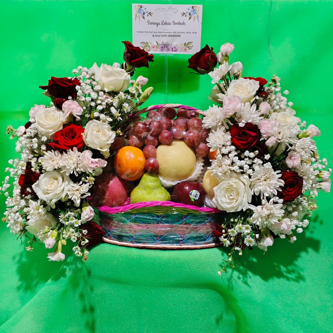 Toko Bhanafsa Florist menawarkan berbagai rangkaian bunga, termasuk papan bunga, karangan bunga, bunga meja, dan standing flower.